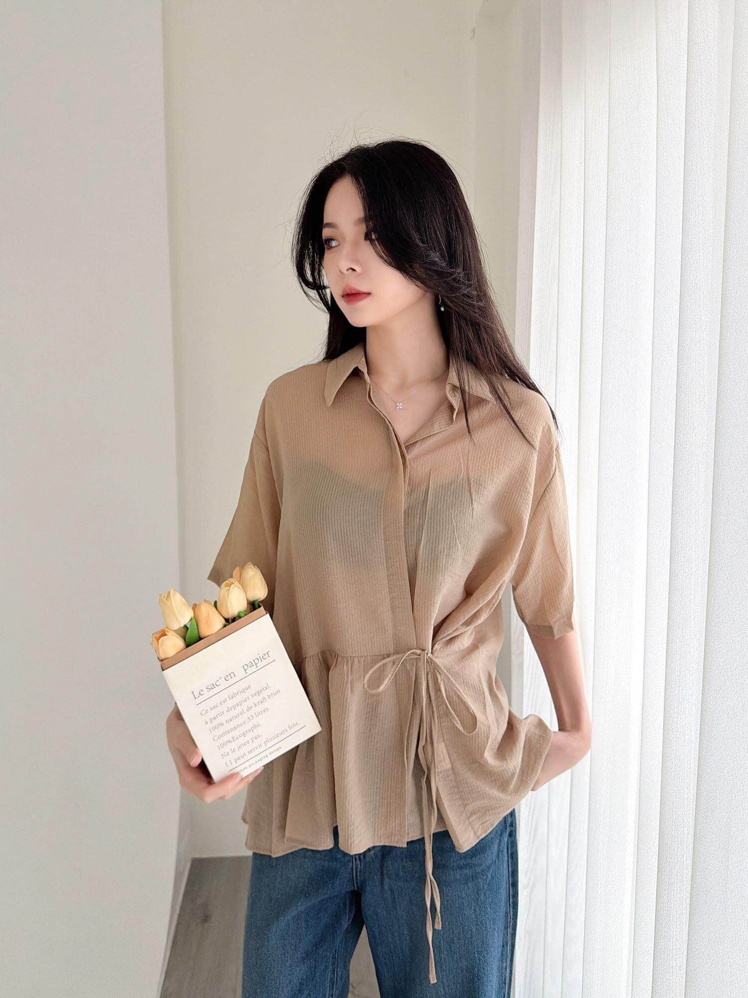 LFA02 釦袖設計翻領休閒雪紡西外