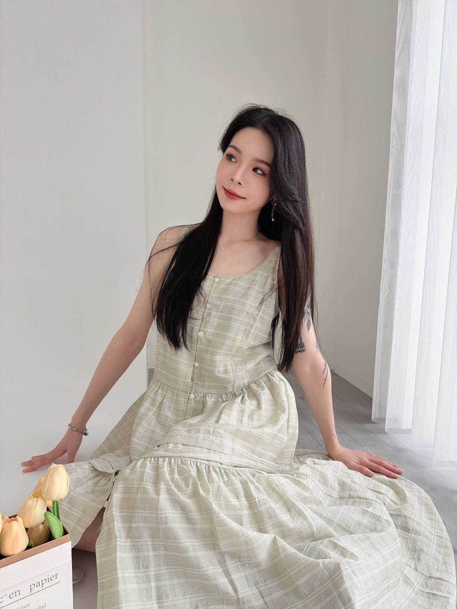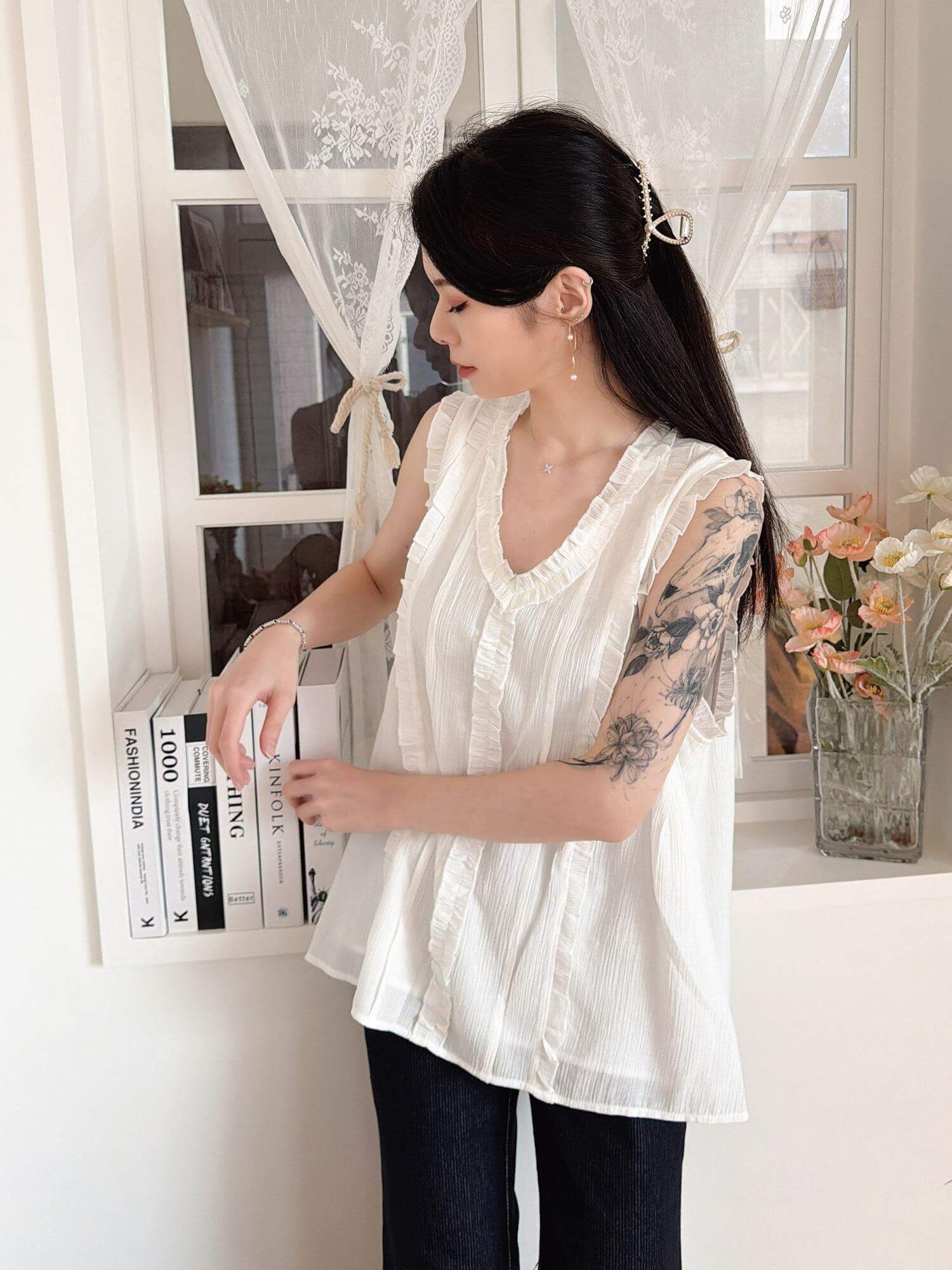 LFA03 簡單純色方領雪紡背心